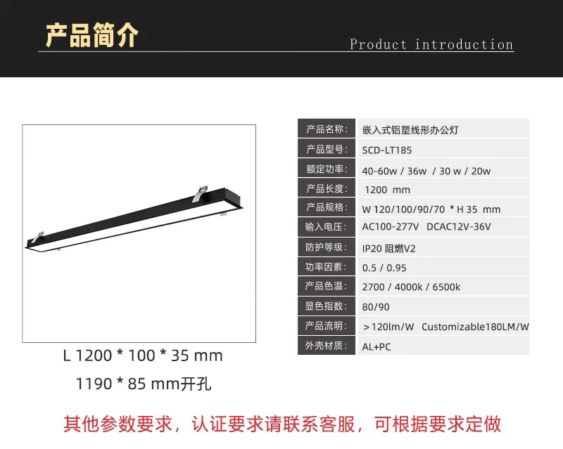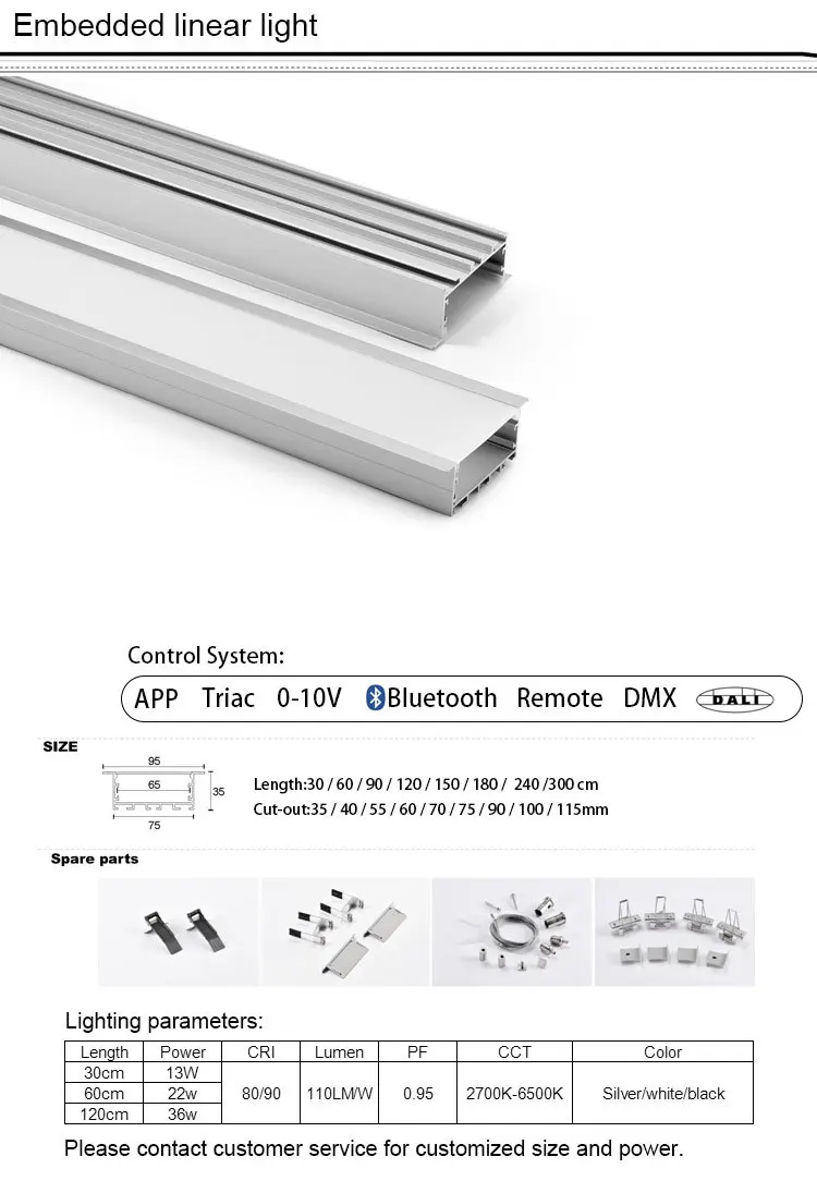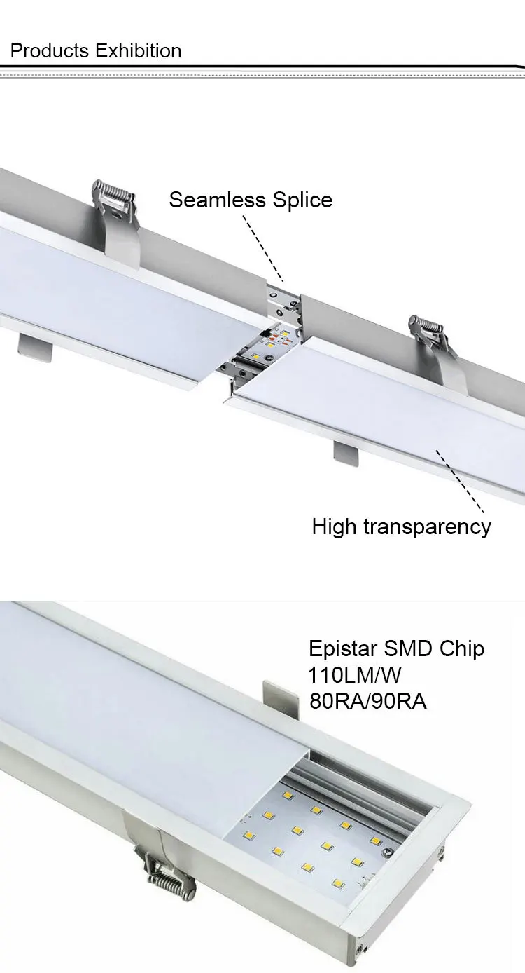 Highlight No-Flicker Anti-Glare Eye-Care for School Library Metro Station LED Lighting Embedded Linear Office Light