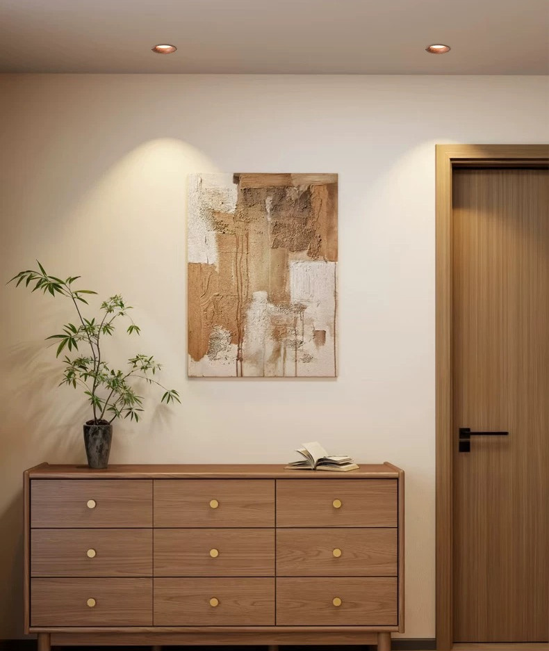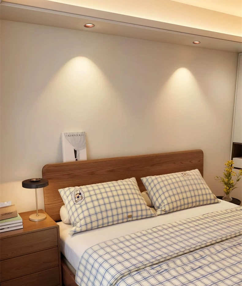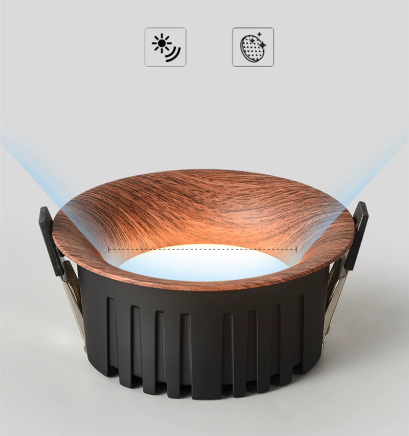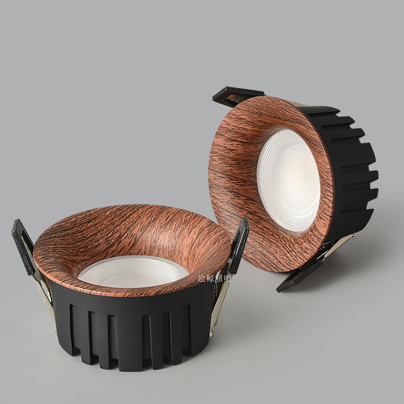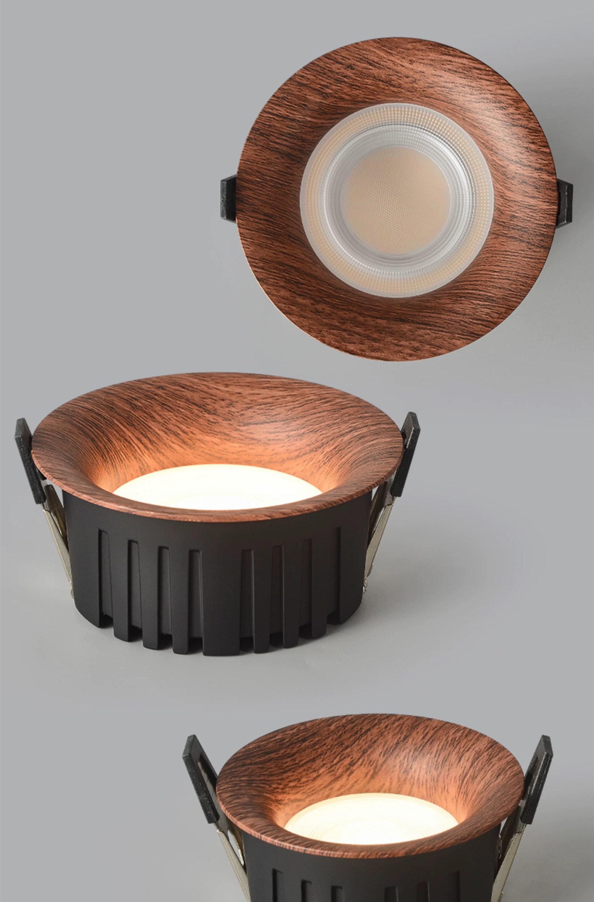 Material: Aluminum Surface of the lamp body: Skin-like paint Color temperature: 3000K / 4000K / 6000K CRI≥90 Curved surface ring: Walnut wood / Natural wood Style: Modern Chinese Style Shelf life: 3 years Light source: SMD Beam angle: 60° Optics: Lens Installation method: Embedded