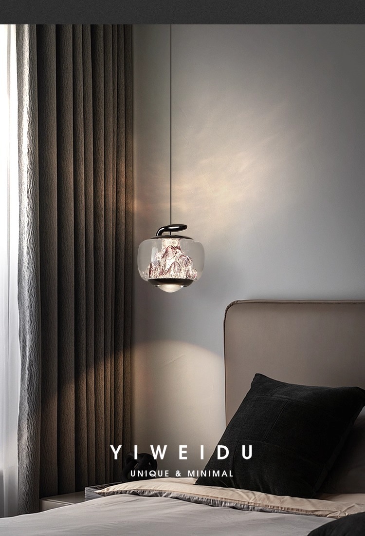 Italian minimalist bedroom bedside chandelier light luxury high-end restaurant lifting bar master bedroom iceberg chandelier