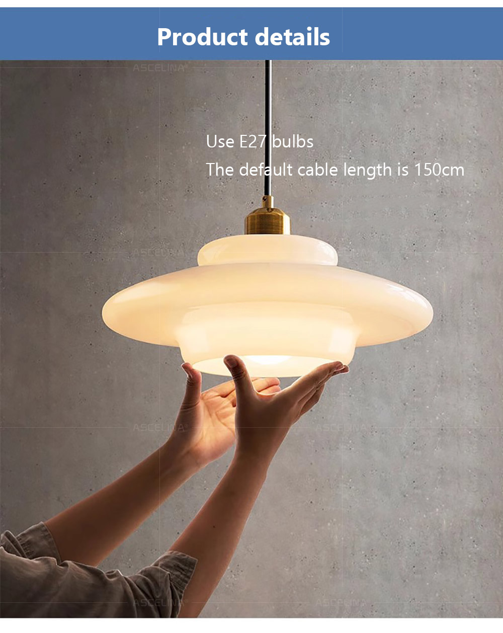 Installation Cord Pendant:The cord pendant installation method allows for easy assembly and flexibility in placement.