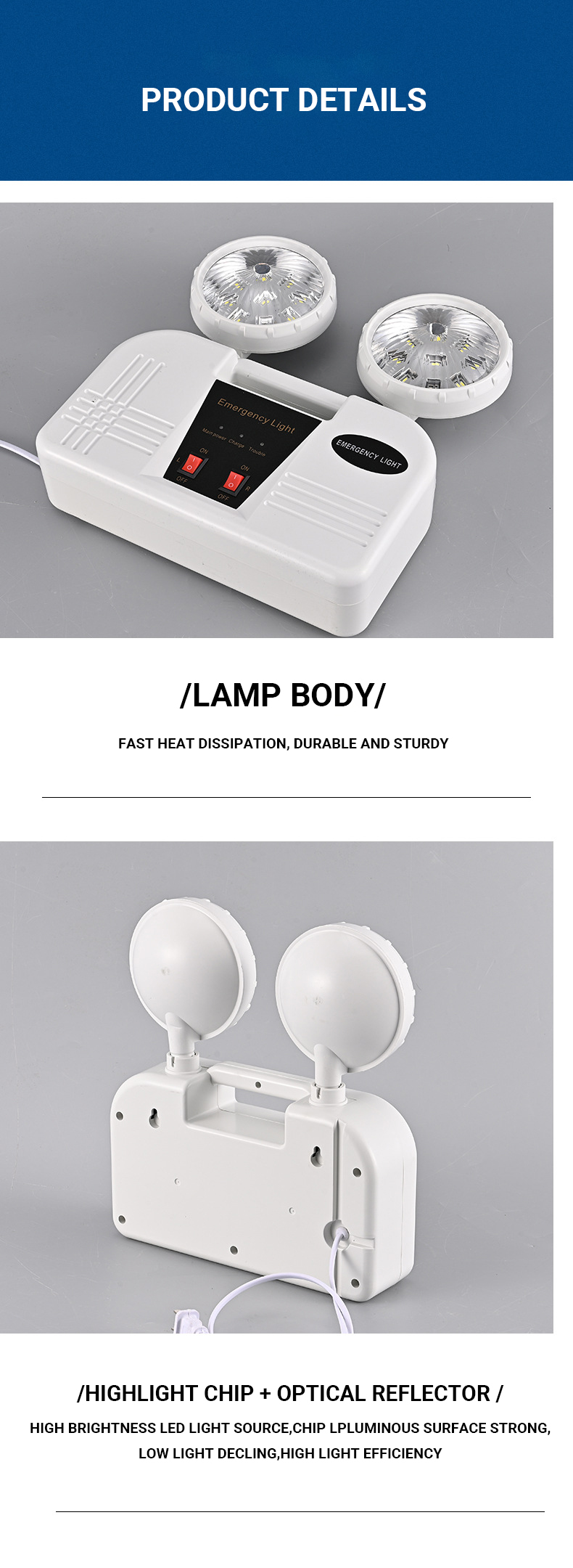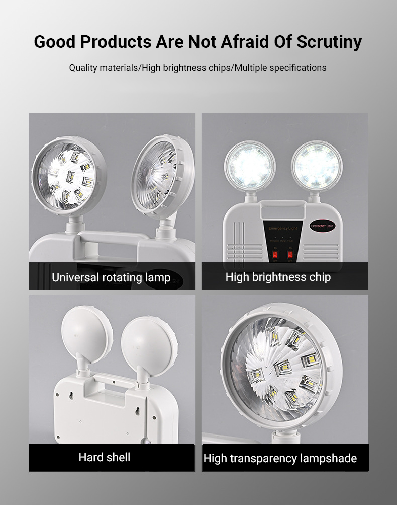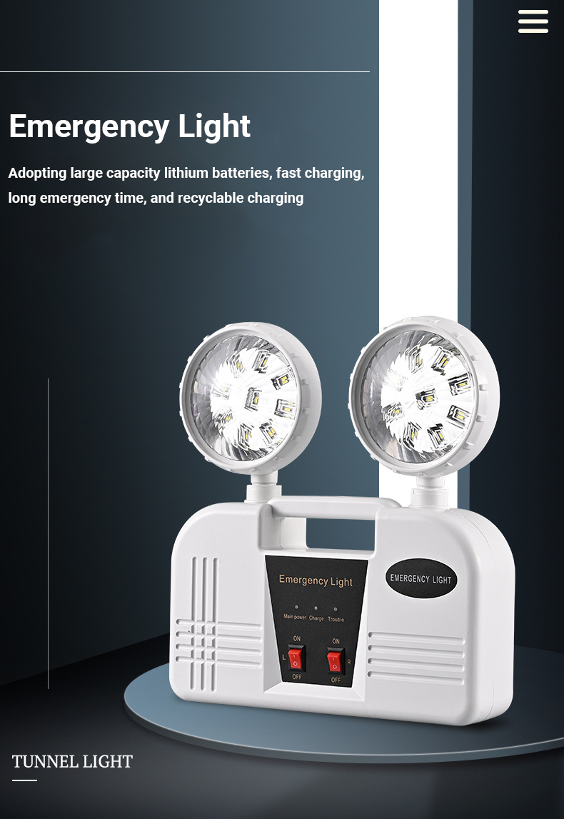 The AC85-265V compatibility of this emergency lamp makes it highly versatile and suitable for use in a wide range of environments. This voltage range allows the lamp to function efficiently in both low and high voltage conditions, ensuring that it can be used in different regions and settings without the need for additional adapters or modifications. This makes it an excellent choice for international use, as well as for homes and businesses that may experience fluctuating power supplies. As a Charging Emergency Light, this product is designed to be charged when the main power is available, ensuring that it is always ready for use when needed. The built-in charging system allows the lamp to be recharged quickly and efficiently, so you don’t have to worry about running out of power during an emergency. This feature is especially useful in areas where power outages are common or unpredictable. In addition to its practical features, the Double Headed LED Emergency Lamp is also designed with energy efficiency in mind. The LED technology used in this lamp ensures that it consumes less power while providing bright and consistent illumination. This not only helps to reduce energy costs but also makes it an environmentally friendly option for those who are conscious of their carbon footprint. The Fire Exit Indicator function of this lamp is another important feature that enhances its value. In the event of a fire or other emergency, the lamp can be used to mark the location of fire exits, helping to guide people to safety. This is particularly useful in large buildings, warehouses, or industrial facilities where clear and visible exit signs are essential for emergency preparedness.