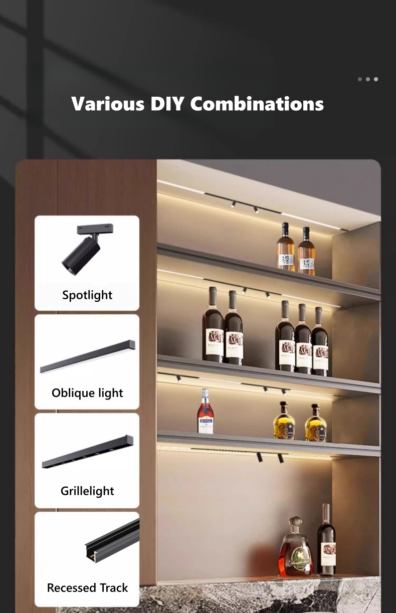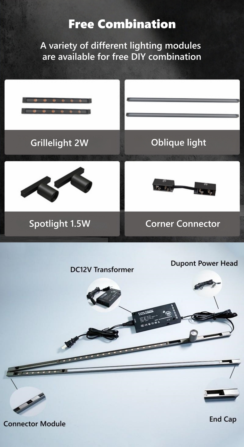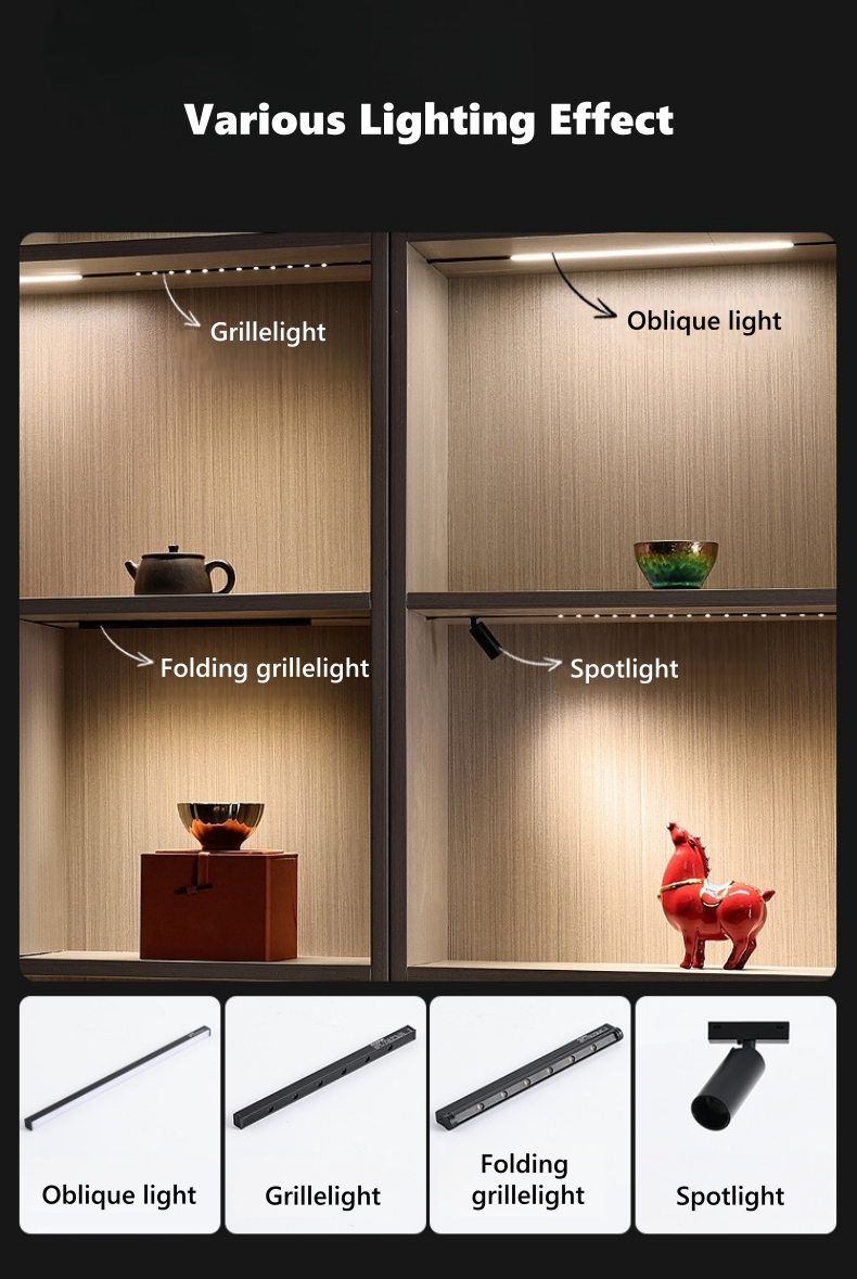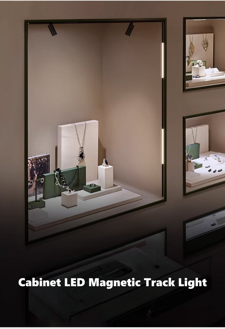 Jewelry Display Mini Spotlight Exhibition Shopwindow Rail Lighting System Grey Recessed Cabinet LED Magnetic Track Light DC12V