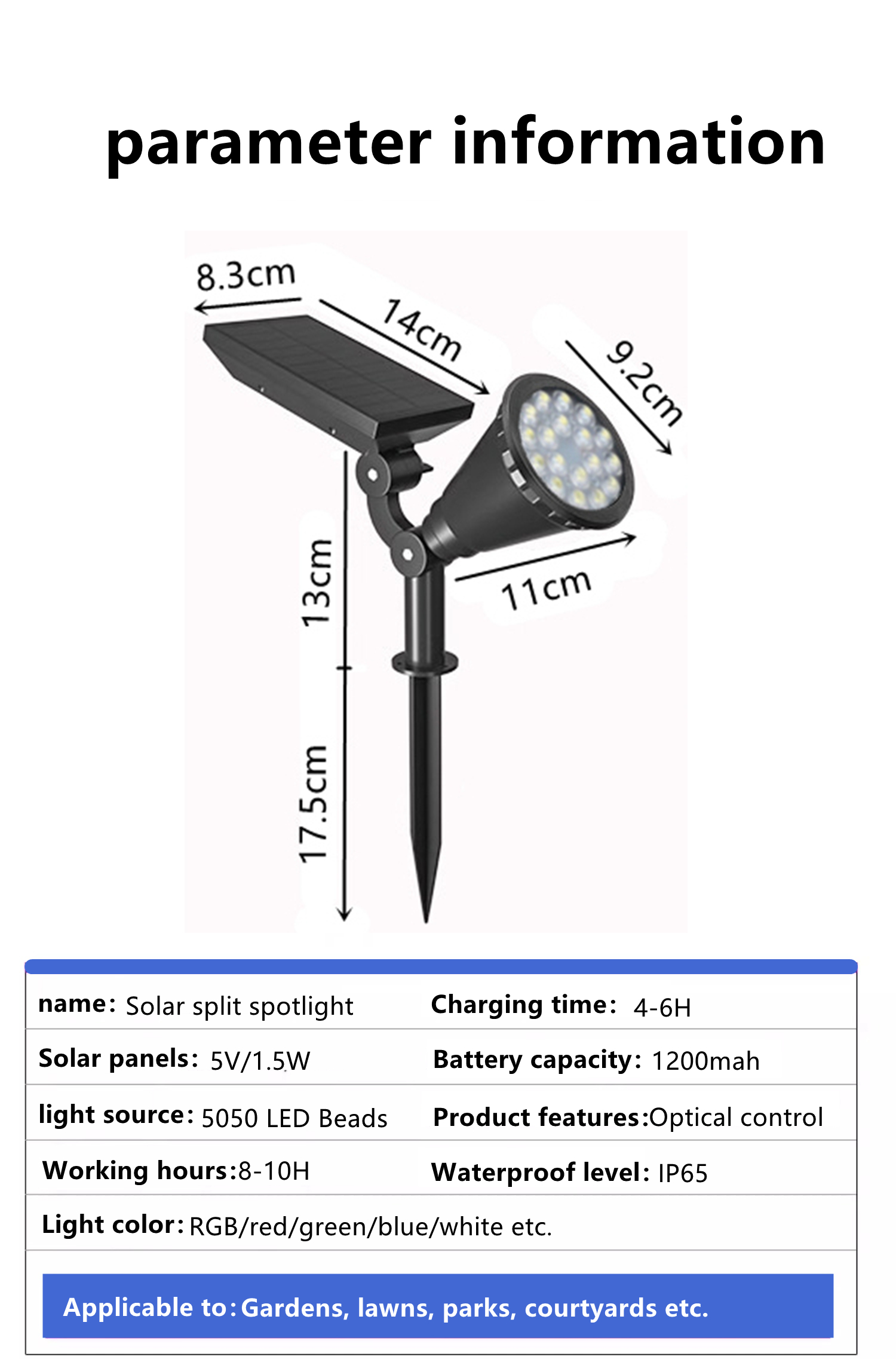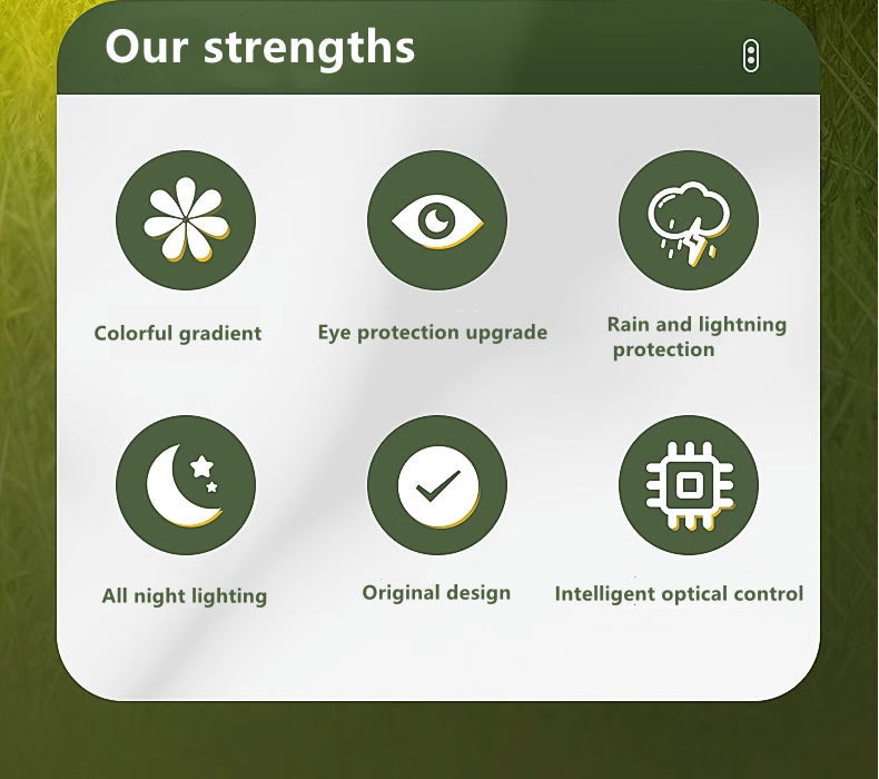 3. Install in an outdoor location away from other light sources (such as streetlights). If other light sources are too bright at night, it may cause the product to not automatically turn on at night.The duration of light depends on the sunlight level, geographical location,weather conditions, and daytime of the solar product.REPAIR TROUBLESHOOTING AND BATTERY.
